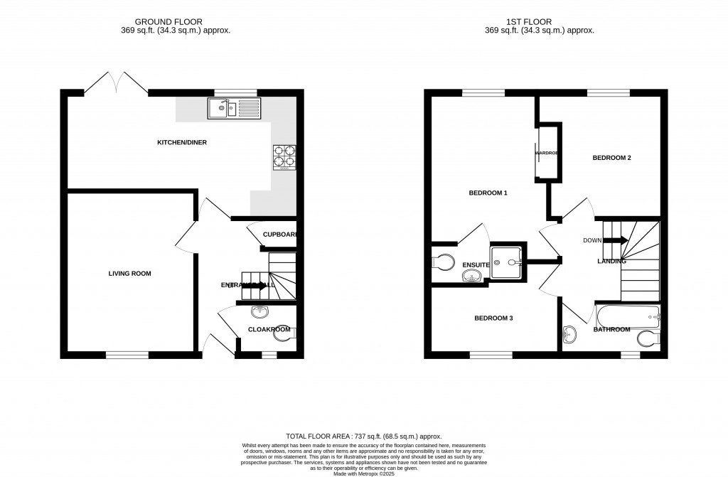 Accommodation comprises: entrance hall, cloakroom, lounge, kitchen/diner, main bedroom with ensuite shower room, two further bedrooms and bathroom.